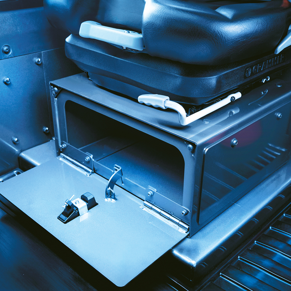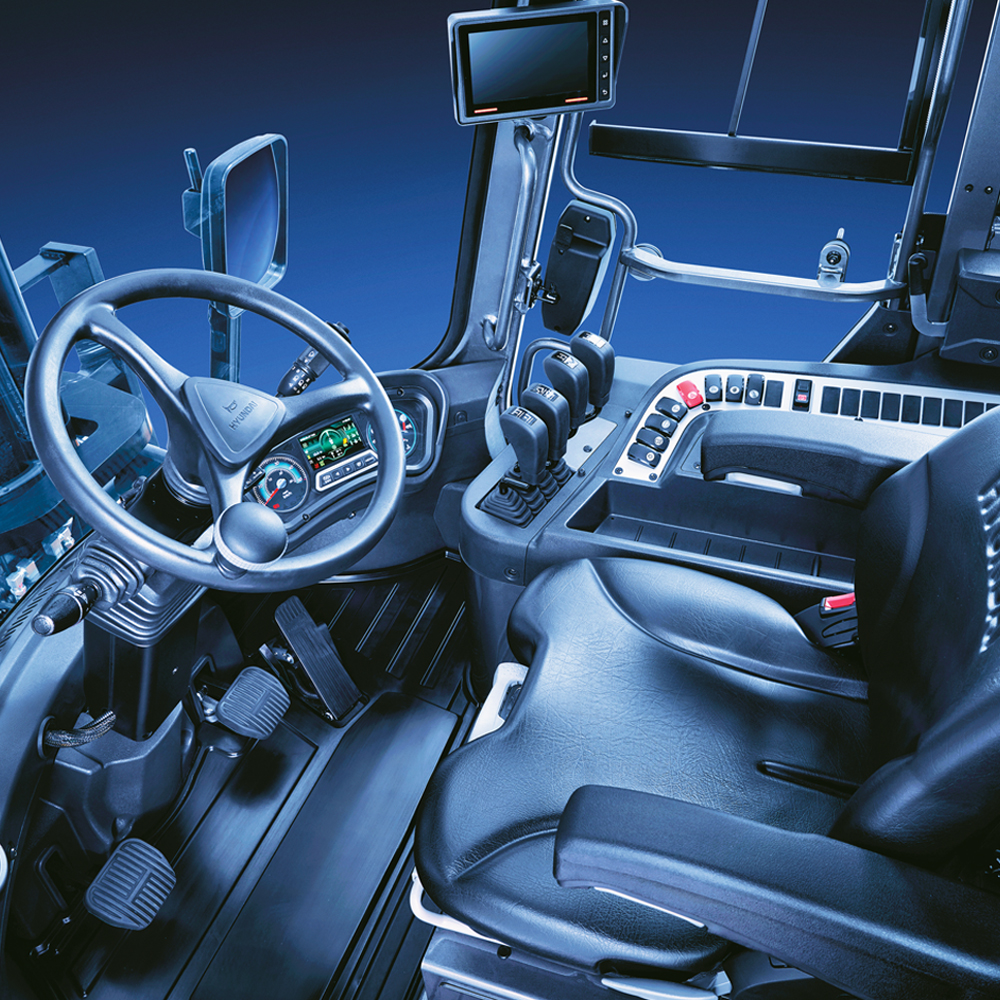 Tilava ja ergonominen ohjaamo tarjoaa kuljettajalle hyvän näkyvyyden, intuitiiviset hallintalaitteet ja mukavan työympäristön pitkien työvuorojen aikana.