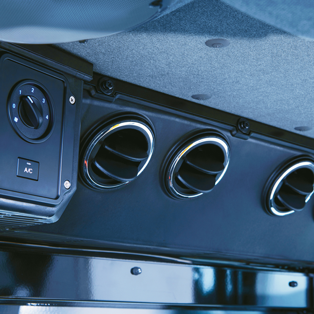 Tehokas ilmastointijärjestelmä varmistaa kuljettajalle miellyttävät työolosuhteet ympäri vuoden ja erityisesti pitkäkestoisessa käytössä.