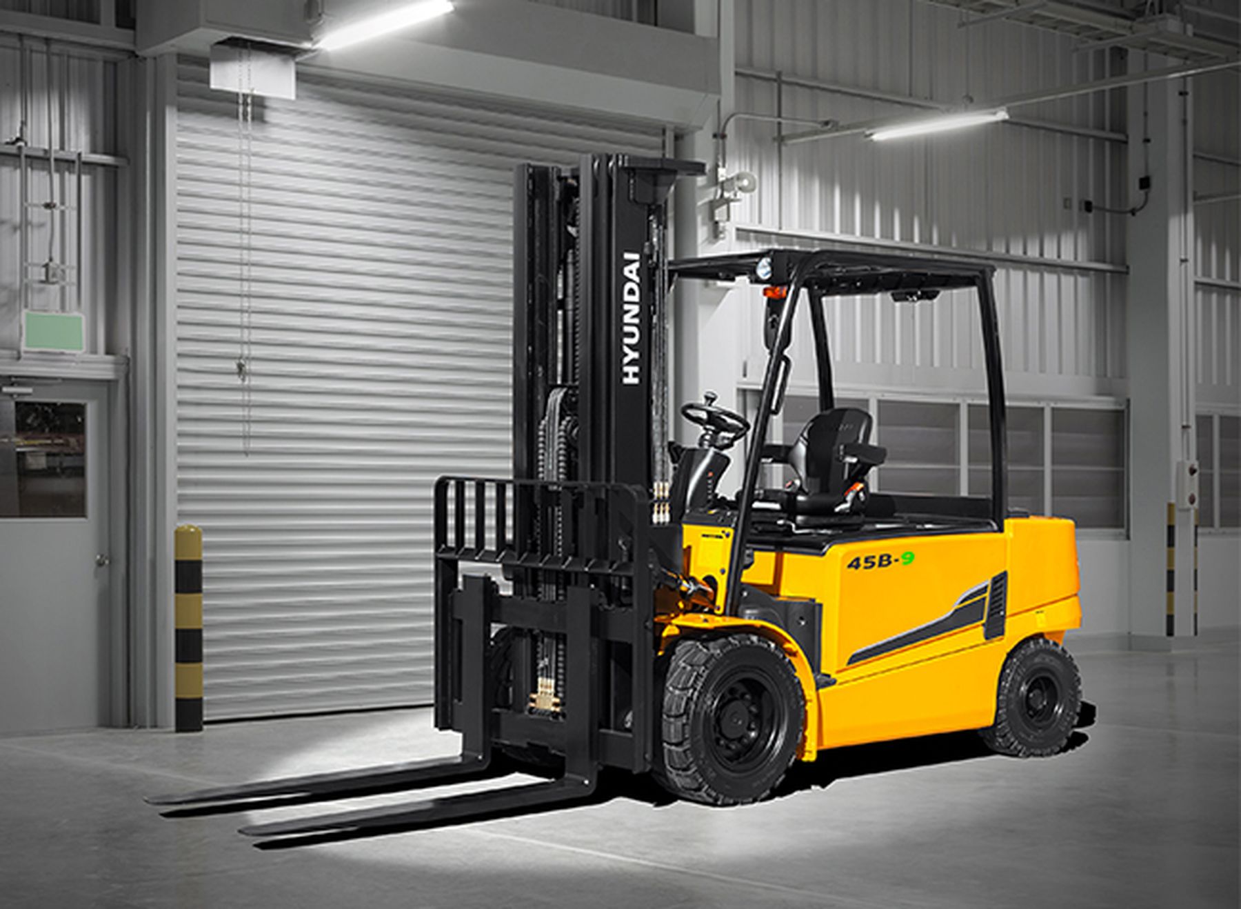 Hyundai 45B-9 -sähkötrukin nimellinen nostokyky on 4500 kg ja sen nostokorkeus on mastomallista riippuen 3000–6000 mm. Sähkötrukin kaksoismoottori on vahvaa ja varmaa tekoa, se tarjoaa aina optimaalisen määrän tehoa ja vääntöä. Myös trukin sähköinen ohjaustehostin sekä kaarteenhallinta- ja käyttötilojen valinta -ominaisuudet tukevat parasta mahdollista suorituskykyä vaihtelevissa työtilanteissa. Hyundai 45B-9 -sähkötrukin vakioakuston volttiluku on hulppea 80, eli virtaa riittää myös pitkäkestoisiin ja akkua kuormittaviin urakoihin. Lähes kaksinkertaisen käyttöiän ja siten entistäkin pienemmät kokonaiskäyttökustannukset tarjoava huoltovapaa ja taukoladattava akku on saatavissa lisävarusteena.