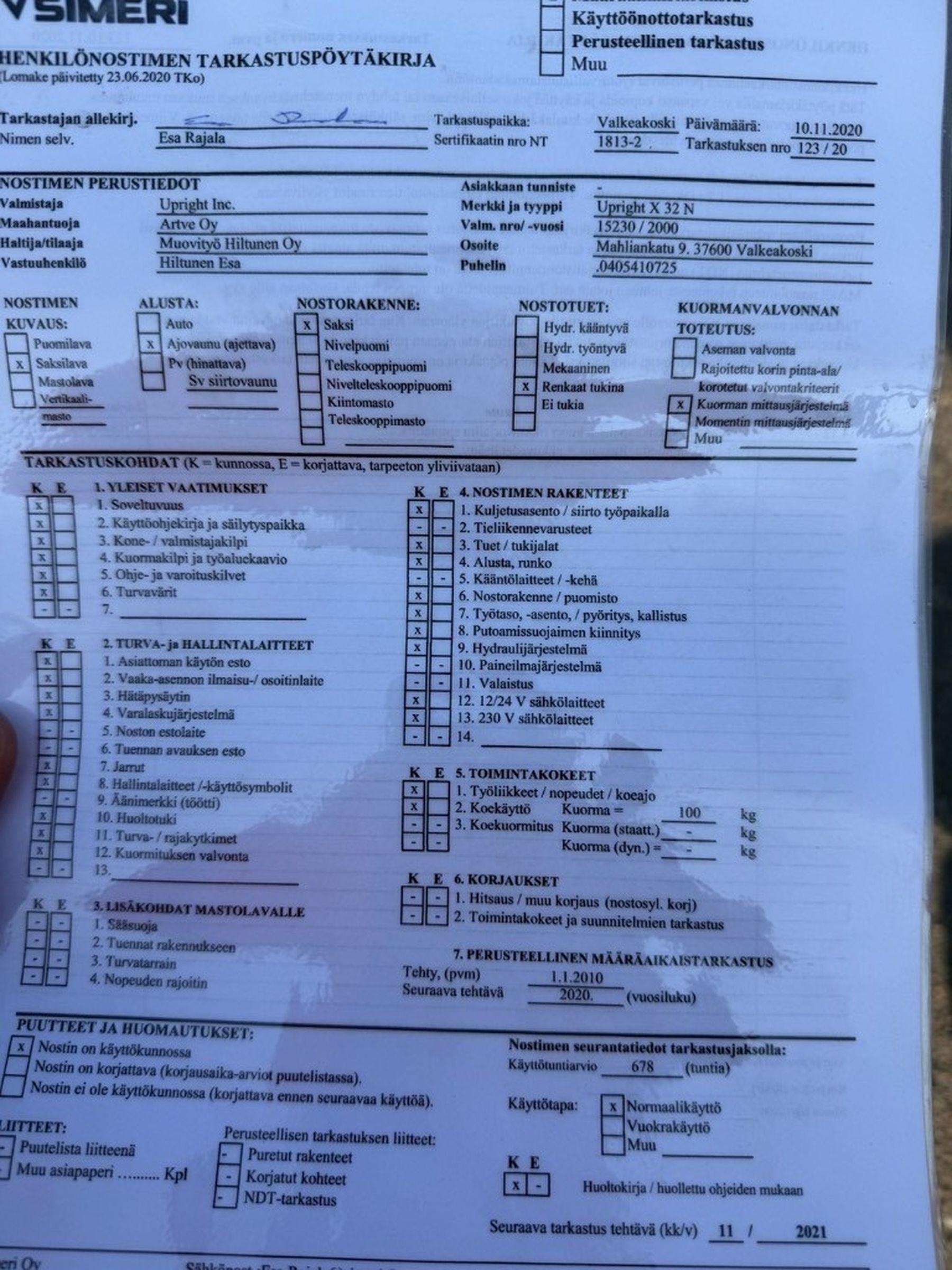 Varastossa Espoo / Simeri. Viimeisin 10v. tarkastus 2020.