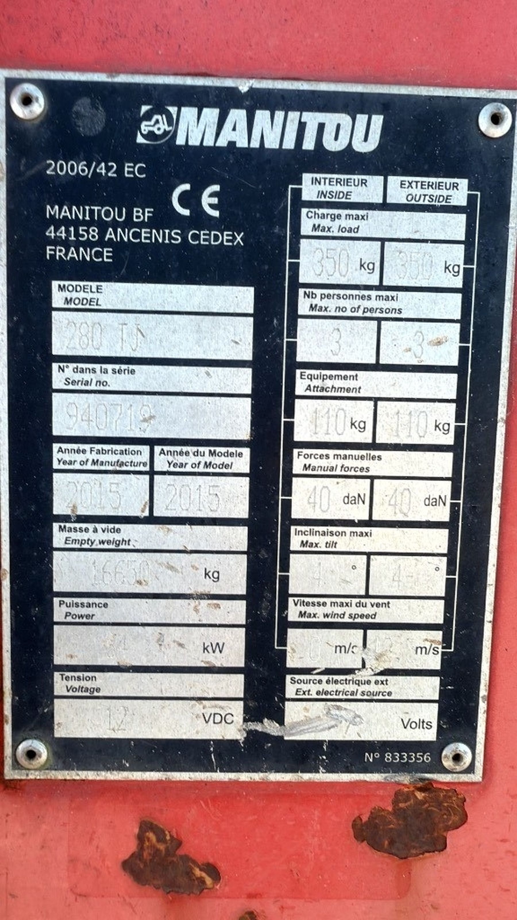 Manitou 280TJ in good condition. One owner and full service history with documents. Inspected and serviced yearly.