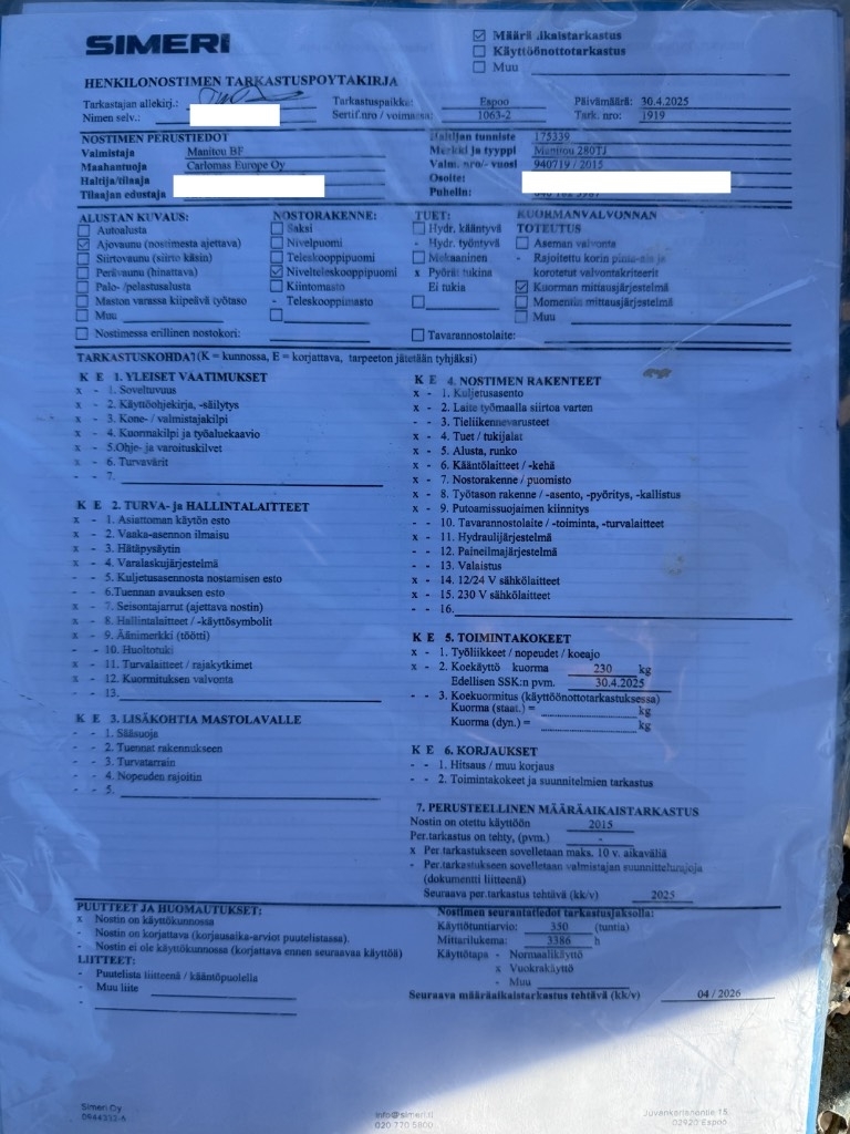 Manitou 280TJ hyväkuntoinen ja toimiva nostin. Huollettu ja tarkastettu säännöllisesti. Kuvia tulossa.