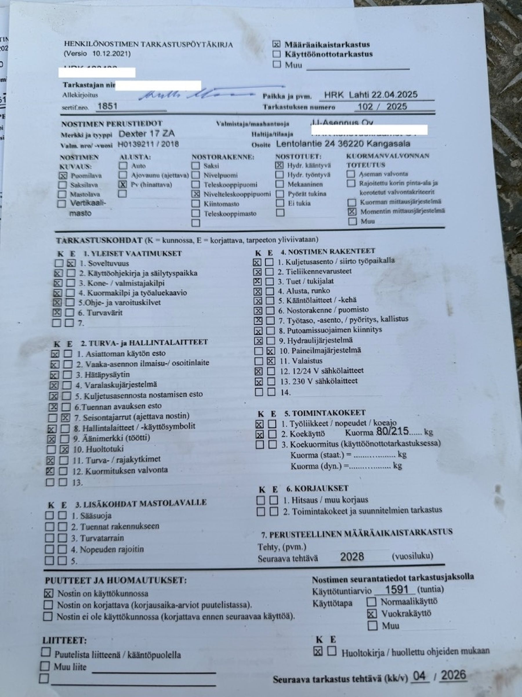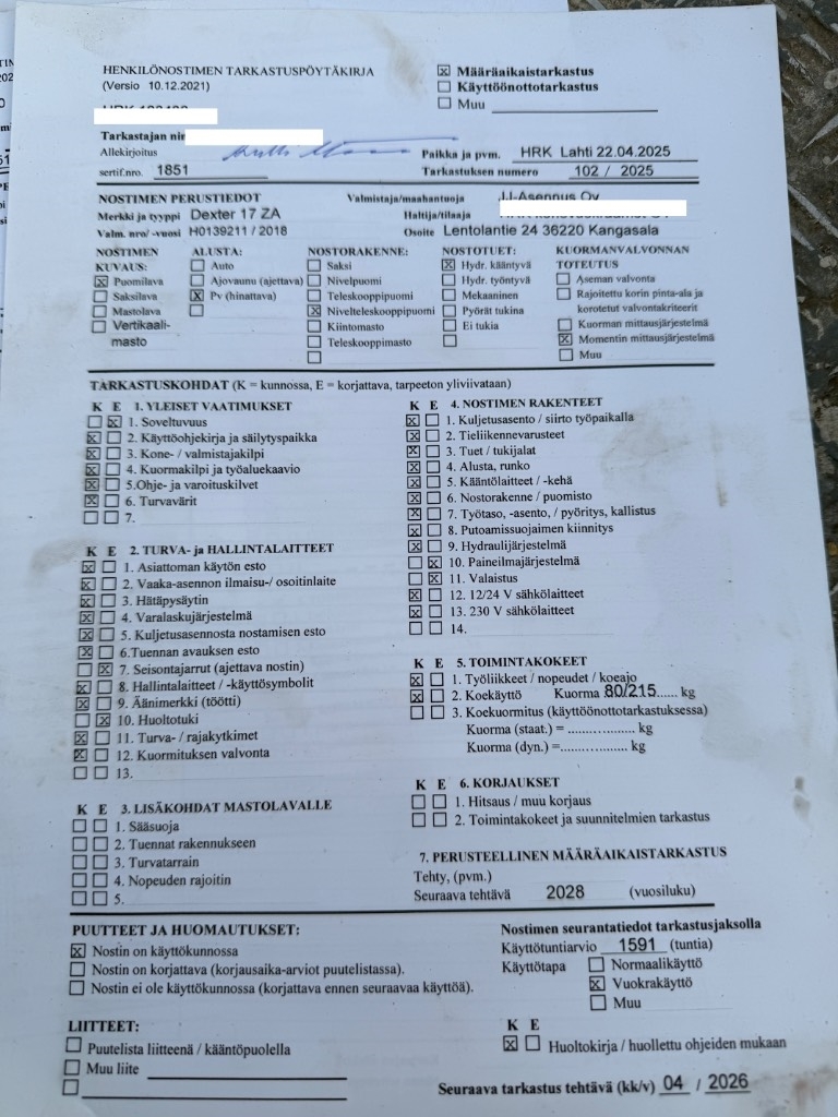 - Suurin työtason korkeus 15,2 m