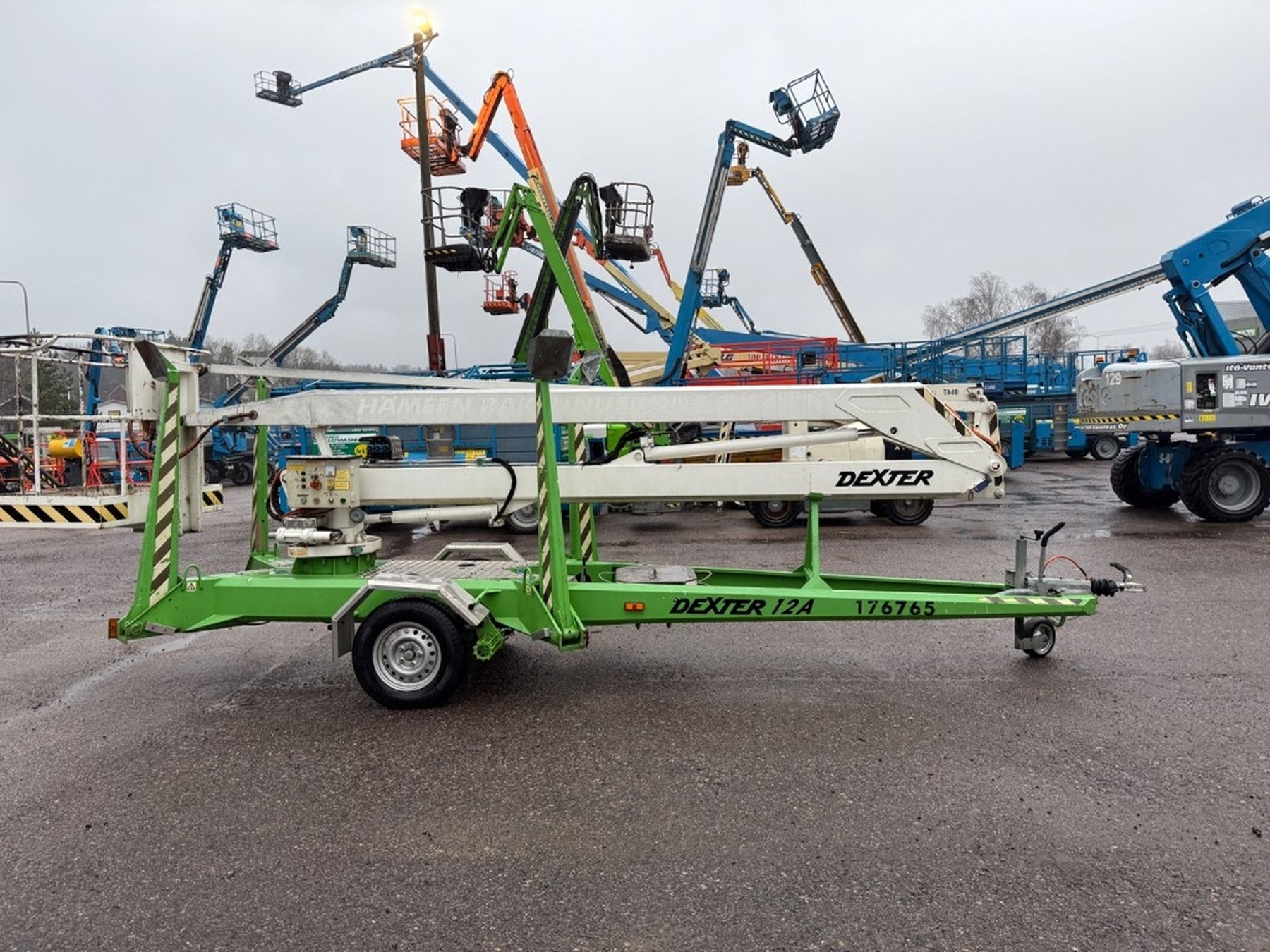 Dexter 12A kevyt, henkilöautolla hinattava nivelpuominostin. Vuosittain tarkastettu ja huollettu, historia dokumentoitu.