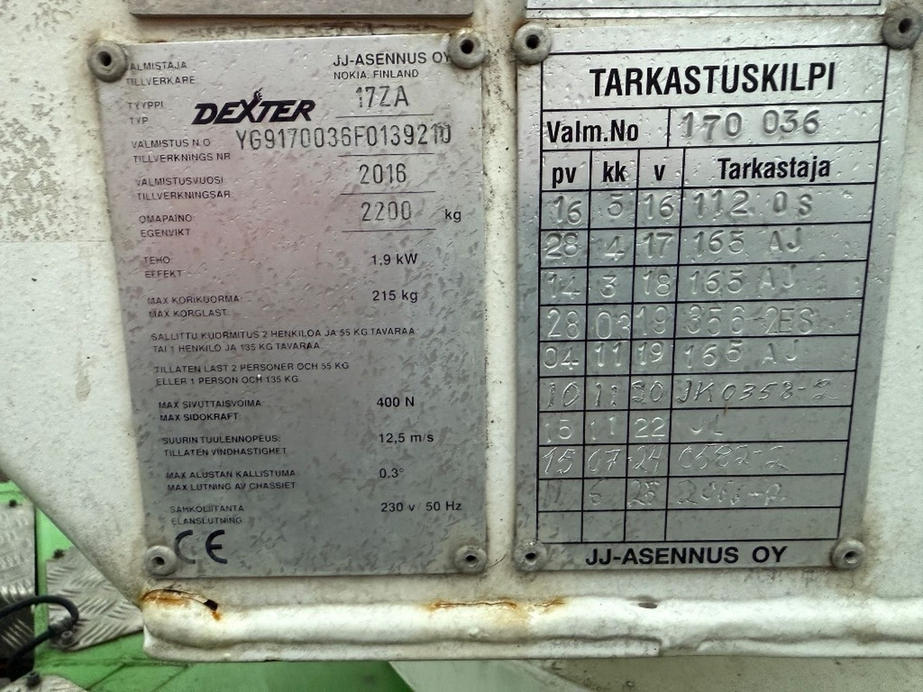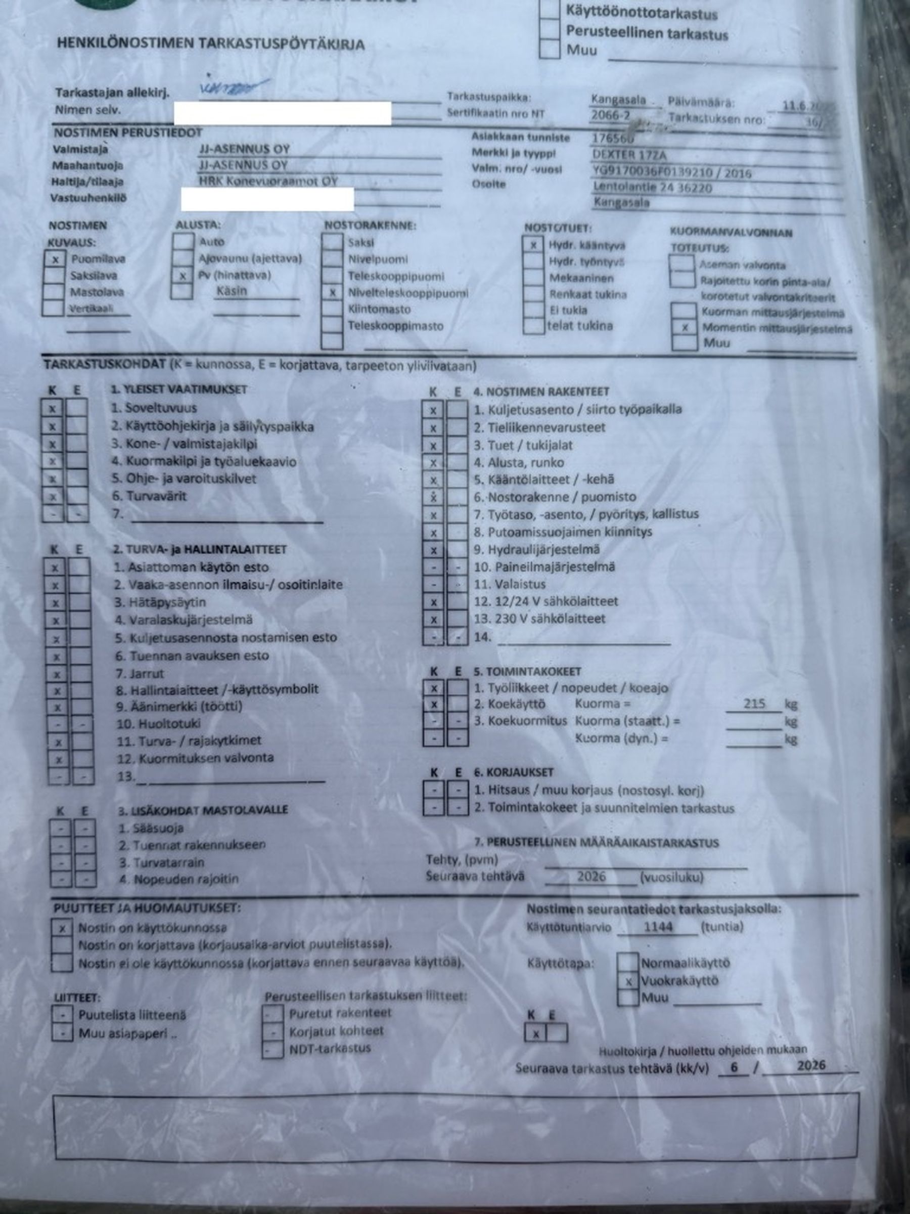 - Suurin sallittu korikuorma 215 kg / 2