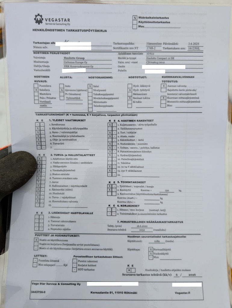 - Suurin kuorma: 450 kg/ 3 hlö