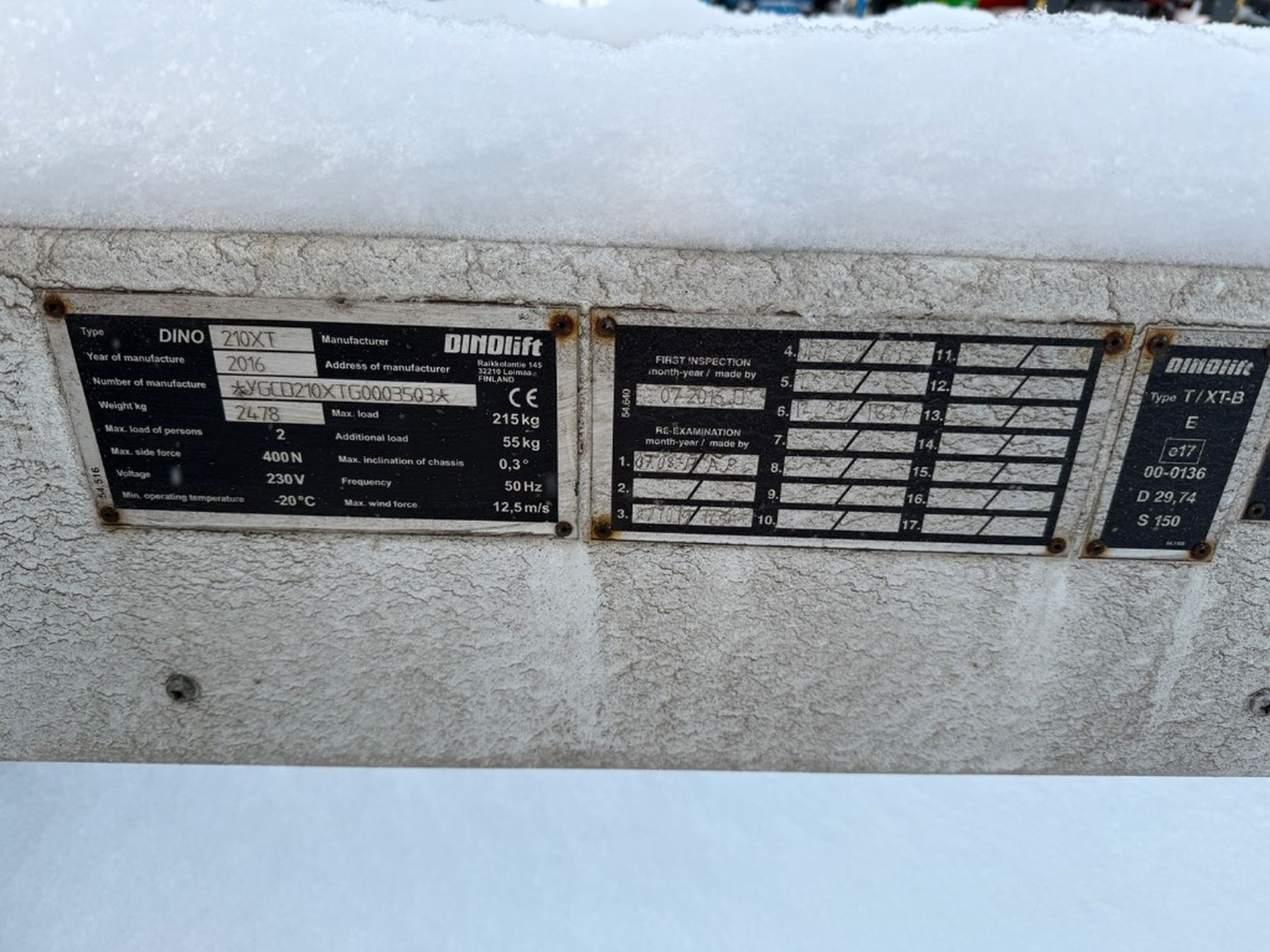 Dino 210XT hinattava nivelpuominostin. Nostin huollettu ja tarkastettu vuosittain.