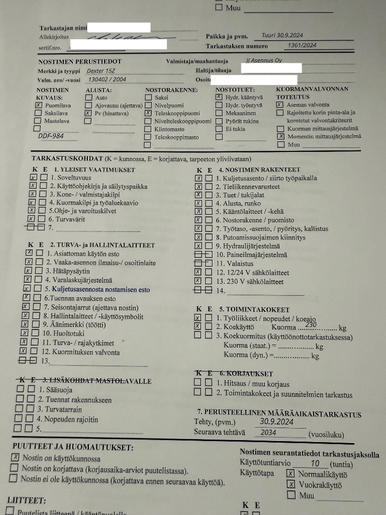 - Suurin sivu-ulottuma 6,5 m (215 kg) / 9m ( 80 kg)